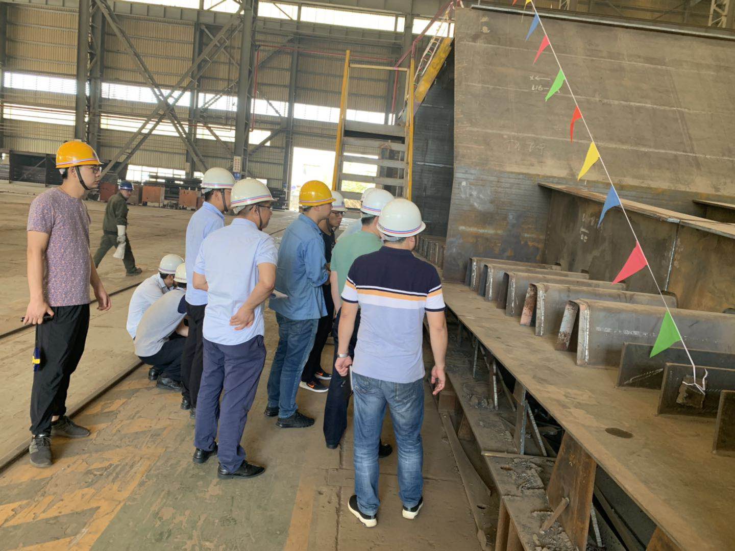 2019年7月10日,江蘇緯信工程咨詢有限公司組織在海波重科召開蘇同黎公路快速化改造工程STL-SG-02標(biāo)(L16聯(lián)5-9節(jié)段)首輪制造總結(jié)會(huì),與會(huì)人員查看了現(xiàn)場(chǎng)首輪鋼箱梁構(gòu)件,聽取了制造單位的匯報(bào),審閱了相關(guān)資料,討論形成最終意見:《蘇同黎公路快速化改造工程STL-SG-02標(biāo)工程鋼箱梁首輪制作施工》內(nèi)容齊全,資料詳實(shí);首輪鋼箱梁(L16聯(lián)5-9節(jié)段)整體尺寸、線形符合設(shè)計(jì)及規(guī)范要求;構(gòu)件檢驗(yàn)資料齊全有效,結(jié)構(gòu)、外觀良好,焊縫無(wú)損檢測(cè)合格。如圖: