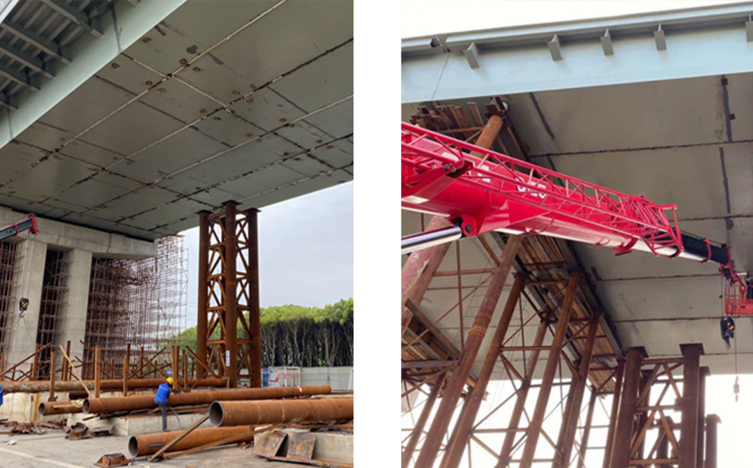 項(xiàng)目主線第四聯(lián)設(shè)計(jì)為三跨等高連續(xù)鋼箱梁頂推施工,是整個(gè)項(xiàng)目中施工難度和施工風(fēng)險(xiǎn)最大的部位,做好施工過程中的安全防護(hù)以及蘇臺高速的交通組織是施工的重難點(diǎn)。其原先設(shè)計(jì)采用由北向南頂推過高速,由于鋼箱梁位于整個(gè)高架橋第四聯(lián),處于上坡段,橋梁縱坡達(dá)到了4%,整個(gè)頂推部分鋼箱梁重量達(dá)到1000噸,按原設(shè)計(jì)方案頂推由北向南,施工難度較大,安全風(fēng)險(xiǎn)高,參建各方集思廣益,不斷優(yōu)化施工組織設(shè)計(jì),將施工方案優(yōu)化為由南向北水平頂推,一次頂推到位,減少地面道路交通導(dǎo)改影響,方案經(jīng)多方論證得以順利實(shí)施。