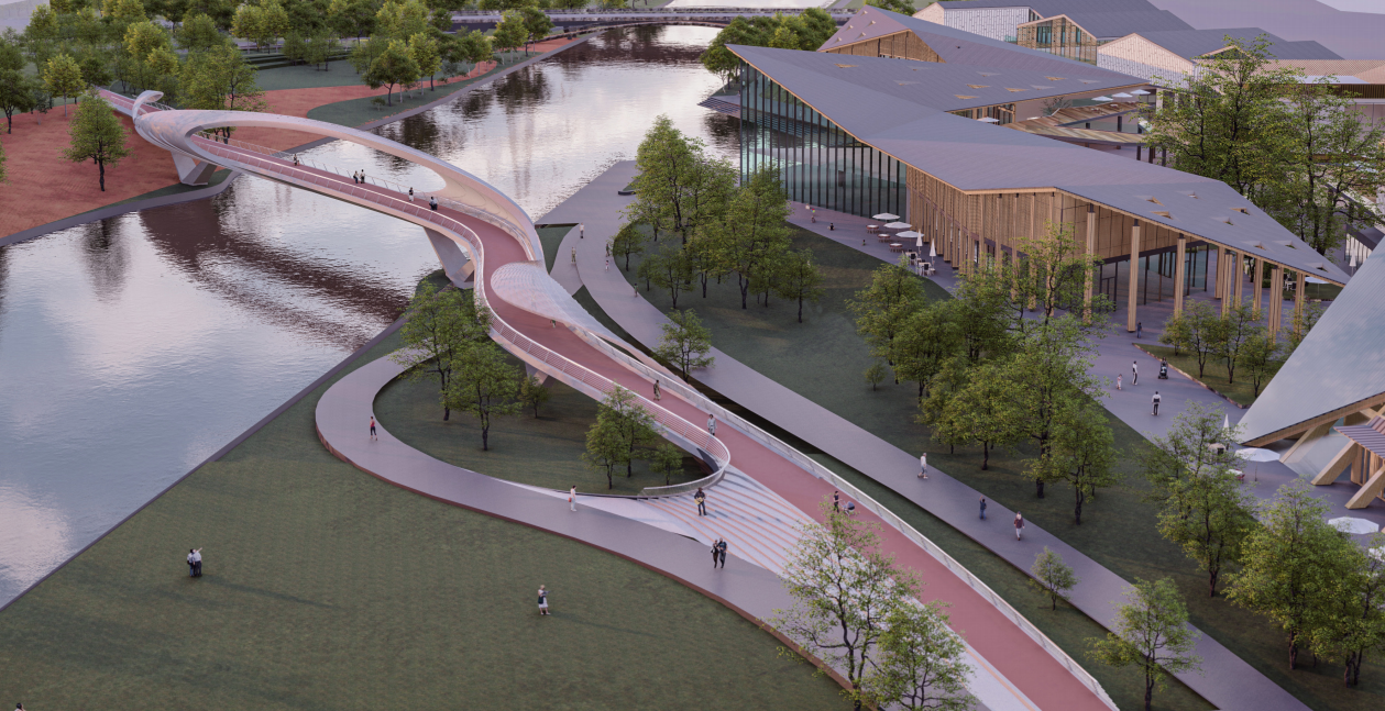 鳳鳴橋項(xiàng)目位于新吳區(qū)伯瀆河公園東側(cè),伯瀆河公園蜿蜒長達(dá) 3.7 公里,坐擁便利的地鐵交通(開發(fā)中)和豐富的景觀及人文資源,是城市級濱水公共空間。
