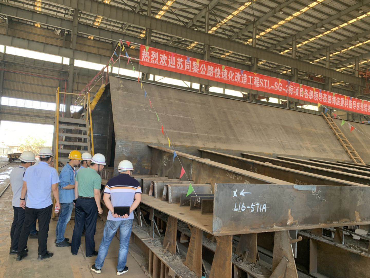 2019年7月10日,江蘇緯信工程咨詢有限公司組織在海波重科召開蘇同黎公路快速化改造工程STL-SG-02標(biāo)(L16聯(lián)5-9節(jié)段)首輪制造總結(jié)會,與會人員查看了現(xiàn)場首輪鋼箱梁構(gòu)件,聽取了制造單位的匯報,審閱了相關(guān)資料,討論形成最終意見:《蘇同黎公路快速化改造工程STL-SG-02標(biāo)工程鋼箱梁首輪制作施工》內(nèi)容齊全,資料詳實;首輪鋼箱梁(L16聯(lián)5-9節(jié)段)整體尺寸、線形符合設(shè)計及規(guī)范要求;構(gòu)件檢驗資料齊全有效,結(jié)構(gòu)、外觀良好,焊縫無損檢測合格。如圖: