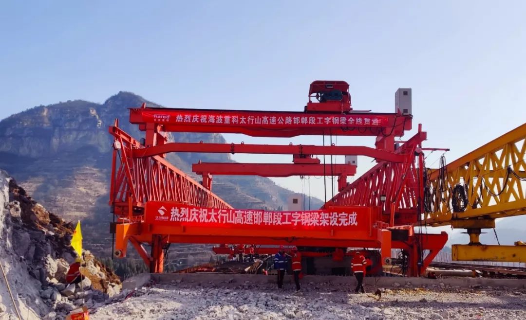 (海波重科新聞報(bào)道)2019年11月19日,由海波重科承接的太行山高速公路邯鄲段工字鋼梁全線貫通。甲方華川集團(tuán)黨委書記、董事長(zhǎng)、總裁謝應(yīng)文、總工程師曾昭明、華北片區(qū)指揮長(zhǎng)陳杰、項(xiàng)目經(jīng)理牟世輝、海波重科總經(jīng)理劉乾俊、項(xiàng)目執(zhí)行經(jīng)理趙占云、項(xiàng)目總工甘泉等領(lǐng)導(dǎo)共同見證這一振奮人心的時(shí)刻。