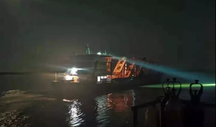 據(jù)悉,同年8月30日,四個(gè)高度為13米鋼管拱節(jié)段的鴻源7號(hào)運(yùn)輸船從海波重科漢南碼頭沿長(zhǎng)江、岷江航道抵達(dá)四川省樂(lè)山市犍為縣。此次航運(yùn)全程1751公里,歷時(shí)12天到達(dá)犍為岷江特大橋橋址,這也為接下來(lái)的主橋鋼管拱的吊裝、結(jié)構(gòu)裝焊、施工平臺(tái)搭設(shè)等工作打開(kāi)了良好開(kāi)端。