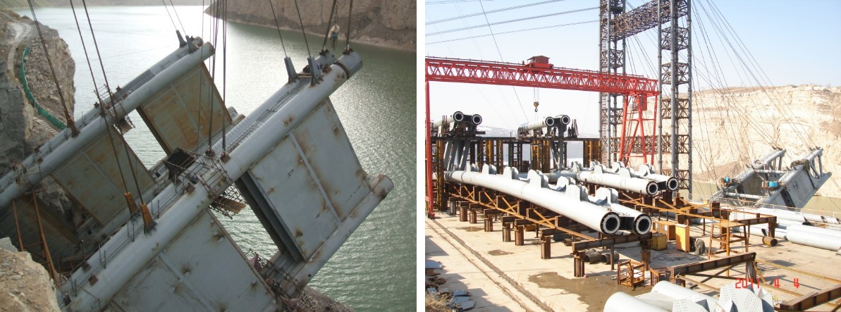 山西準(zhǔn)朔黃河特大橋為上承式鋼管拱橋,主跨為360m的鋼管混凝土拱結(jié)構(gòu),工程量為9100噸。于2009月9月份開始施工,到2011年7月份完工。全橋采用橋為整體節(jié)段拼裝、纜索吊吊裝的施工方案,克服了四管拱腳空間定位、整體節(jié)段懸拼精確定位、冬季施工等難點。