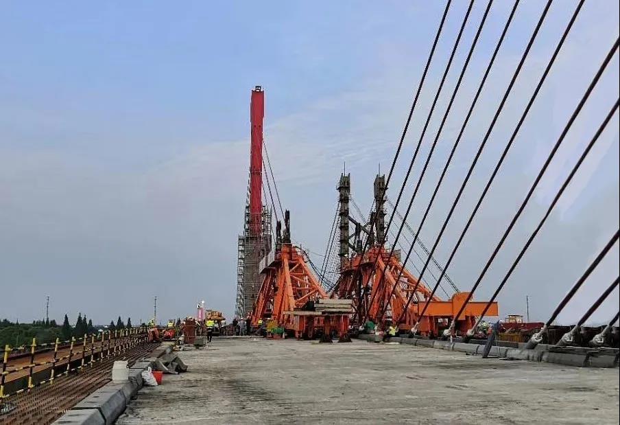 上海泖港項(xiàng)目部還通過多種創(chuàng)新技術(shù)及方案,賦予主橋諸多新的“閃光點(diǎn)”:通過采用球鋼支座和疊層橡膠支座的支承體系,大幅提升了塔梁固接體系斜拉橋的抗震性能;鋼主梁兩側(cè)設(shè)置后拼裝挑臂,通過時間和空間的錯位實(shí)施,巧妙地增加了橋梁的安全距離,減小了相互干擾。泖港大橋改建完成后,大橋距離水面高度將完全滿足IV級航道的通航需要,提升航道運(yùn)輸能力,使整個平申線航道成為浙滬之間的一條水上高速通道,對支撐上海市國際航運(yùn)中心建設(shè)、改善黃浦江上游地區(qū)交通條件、環(huán)境質(zhì)量和防洪除澇能力具有重要作用。