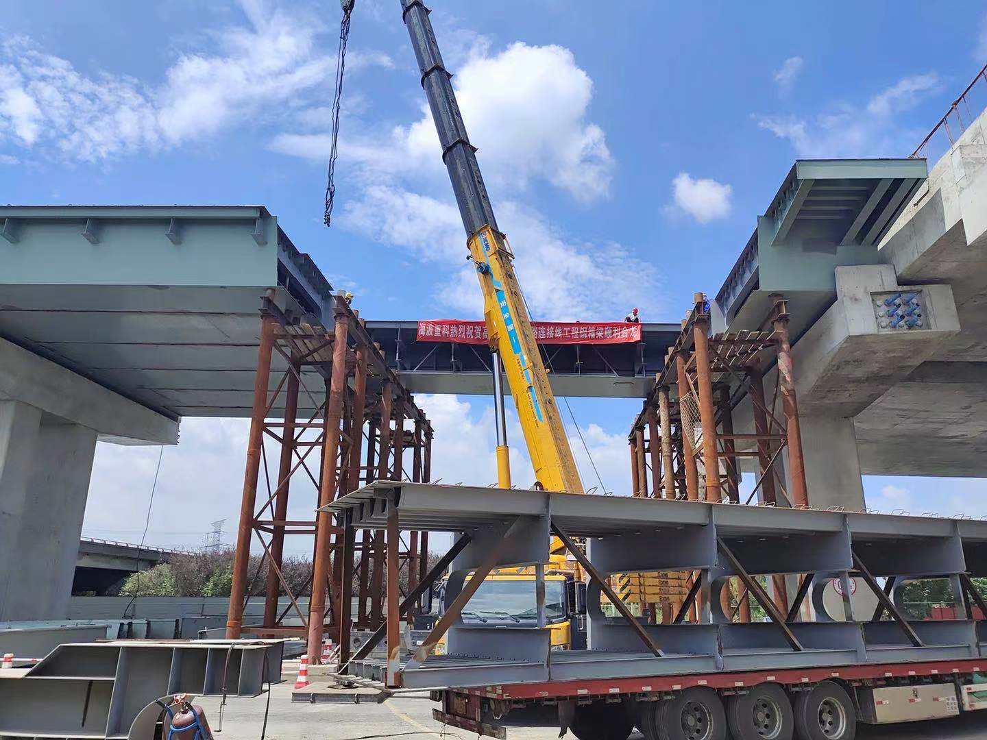 海波要聞丨熱烈祝賀高鐵新城快速路連接線工程上跨繞城高速主跨鋼箱梁成功合龍!